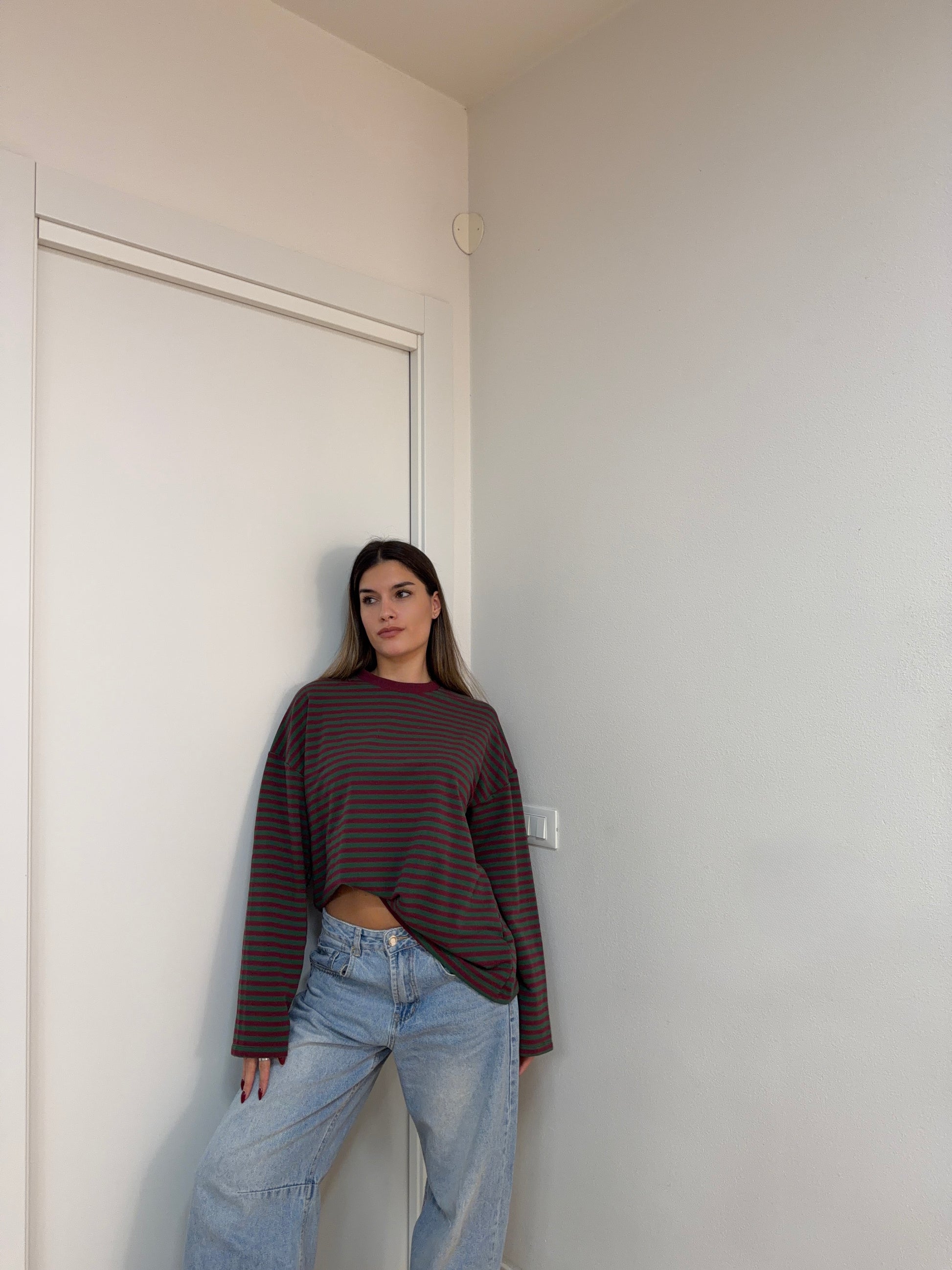 Felpa a righe over (Green/Bordeaux).