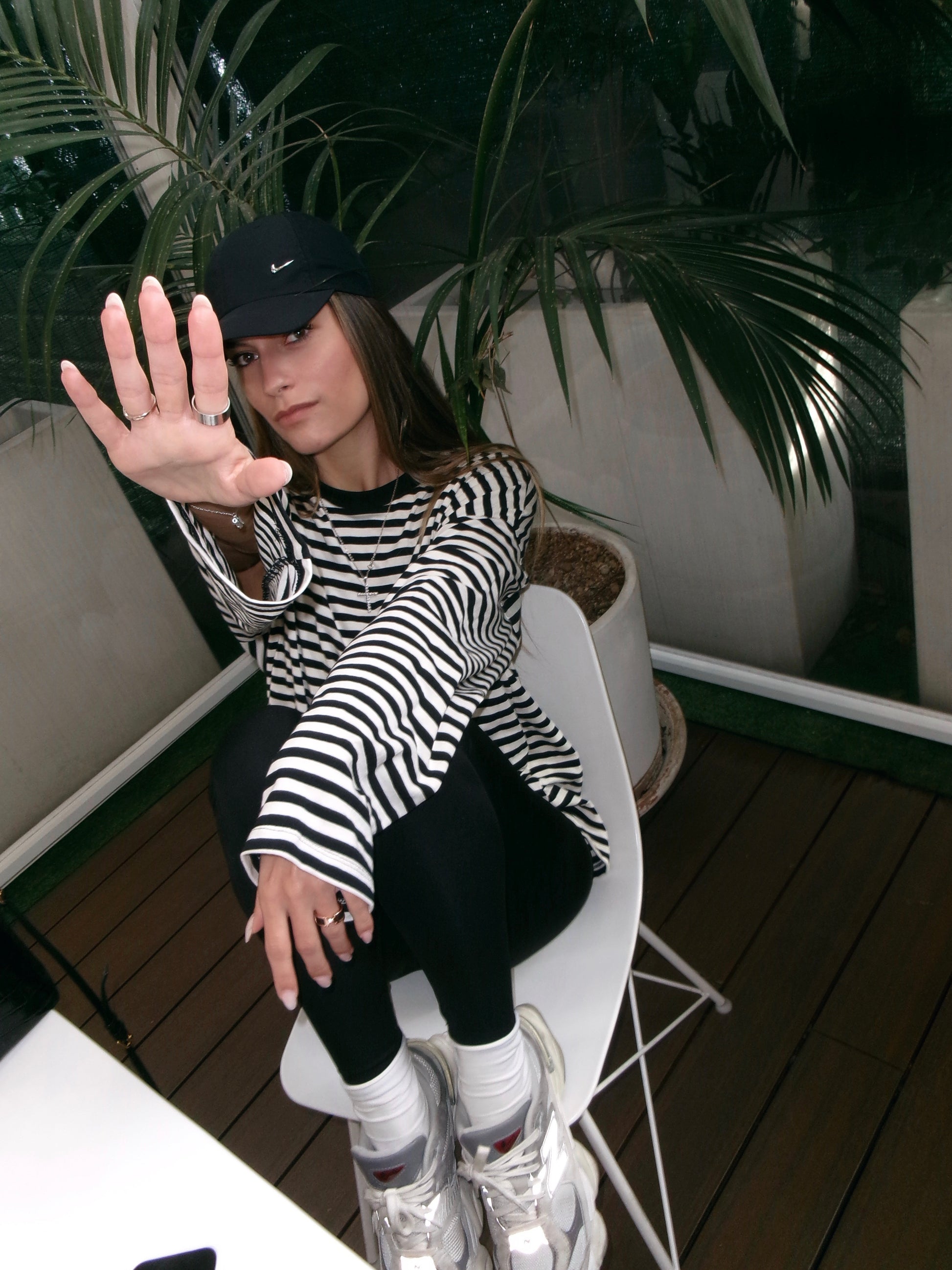 Maglia over a righe con manica larga in 70% Cotone (cotone elastico).